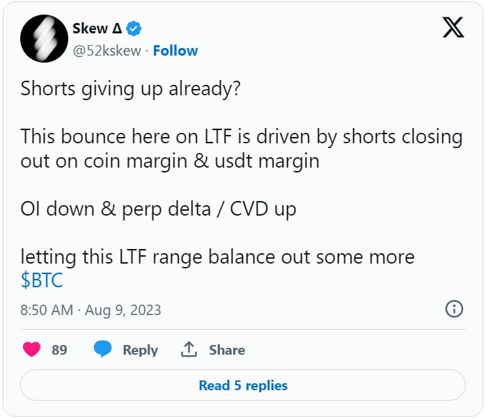 Scrutinizing the driving forces behind the upward surge, a spotlight shone on Bitcoin whales. These influential stakeholders exhibited increased buying activity across different segments. Keen-eyed trader Skew observed the tug-of-war between bulls and bears within the derivatives market.