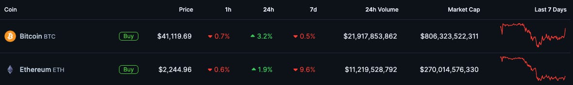 Crypto is down (again) this week, with BTC being down 0.5% and ETH down 9.6%: